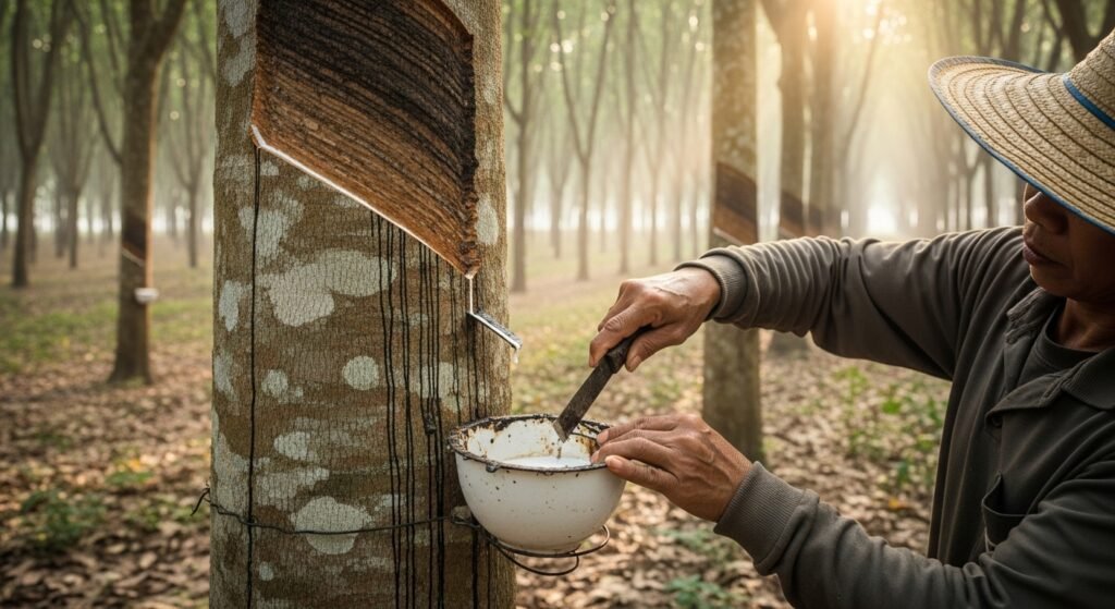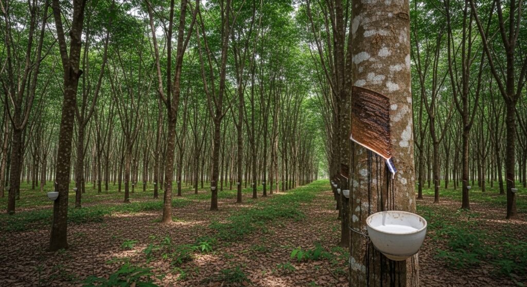 At Algae Park’s plantation, rubber farming is carried out with careful attention to quality and sustainability, ensuring that the latex harvested meets the needs of local markets and maintains consistent standard.
